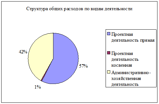 Основная часть финансирования уходит на проектную деятельность прямую и административно-хозяйственные расходы, что также подтверждается структурой общих расходов представленной на рис 5, с 48.