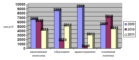 Можно отметить, что из всех социально значимых направлений расходов по 2009-2011 гг именно 2009 г характеризуется наибольшим финансированием, за исключением социальной политики, как было отмечено выше.