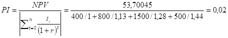 Индекс рентабельности инвестиции PI показывает прибыль или доход, получаемый на единицу капиталовложений, и определяется по формуле: