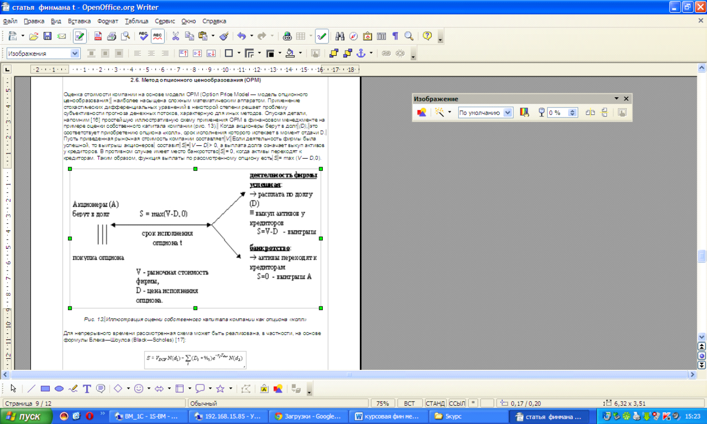 Рис. 13. Иллюстрация оценки собственного капитала компании как опциона «колл»