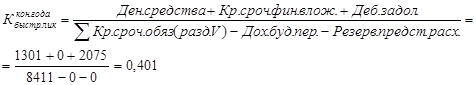 В нашем случае положение к концу года улучшилось на 0,081. Установленная норма от 0,2 до 0,5. [12, 276]