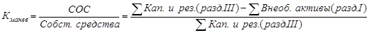 5) Коэффициент маневренности собственных средств - отношение собственных оборотных средств компании к общей величине собственных средств. Показывает способность предприятия поддерживать уровень собственного оборотного капитала и пополнять оборотные средства в случае необходимости за счет собственных источников. [12, 278]