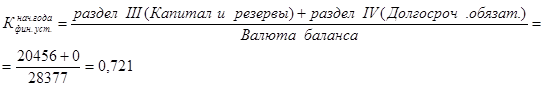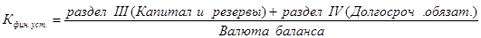 7) Коэффициент финансовой устойчивости - показывает, какая часть актива финансируется за счет устойчивых источников. Рассчитывается по следующей формуле [12, 281]: