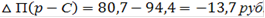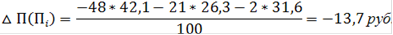 Изменение прибыли на единицу продукции равно алгебраической сумме влияния цены и себестоимости, скорректированных на фактическую структуру продаж (П = р - С), поэтому