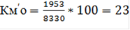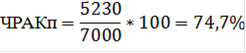 Значение ЧРАК за отчетный период =0,19*23*6,3=27,5% | |