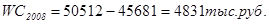 Оценим ликвидность и платежеспособность с помощью ряда абсолютных и относительных показателей. Абсолютным показателем является величина собственных оборотных средств WC.