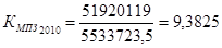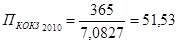 ПФЦ 2010 = 38,9 + 39,7 - 51,53 = 27,07 дней