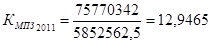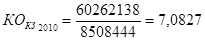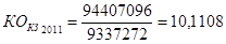 Коэффициент оборачиваемости кредиторской задолженности сократился в 2011 году по сравнению с 2009 годом на 0,6246 пункта или на 5,82%, и увеличился по сравнению с 2010 годом на 3,0281 или на 42,75%, что неблагоприятно сказывается на ликвидности предприятия.