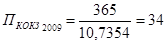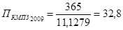 ПФЦ 2009 = 32,80 + 38,39 - 34 = 37,19 дней