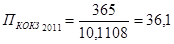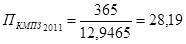 ПФЦ 2011 = 28,19 + 23,08 - 36,1 = 15,17 дней