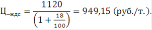 Цена топлива за вычетом НДС определяется по формуле (1.2):