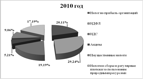 Рис.7. Долевой состав налоговых поступлений ФНС России по Челябинской области в консолидированный бюджет за 2010 г