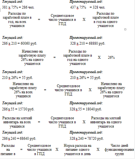 Показатели о среднегодовом числе учащихся 1-4 классов берём из таблицы 3. Из условий задачи известно, что ГПД посещают 75% учащихся 1-4 классов. Среднегодовое число учащихся в ГПД: