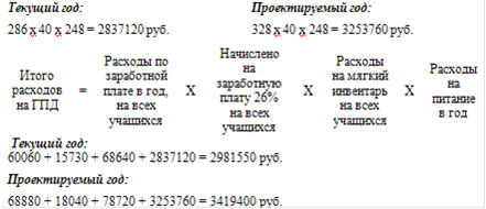 6. Расходы на питание: норма расхода на питание одного учащегося в день, руб. число дней функционирования групп расходы на питание в год, руб.